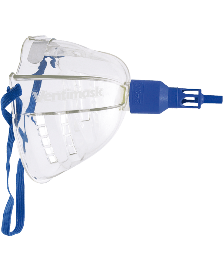 Klinisch bewezen dat “alleen de Ventimask® in staat is om een vaste en voorspelbare zuurstofconcentratie te bieden onder omstandigheden van de veranderende beademingspatronen die in de klinische praktijk worden gevonden.” 1 Ventimask® is de geaccepteerde standaard voor gecontroleerde zuurstoftherapie voor exacte zuurstofconcentratie, optimale klinische prestaties en een grotere aanvaardbaarheid van de patiënt.